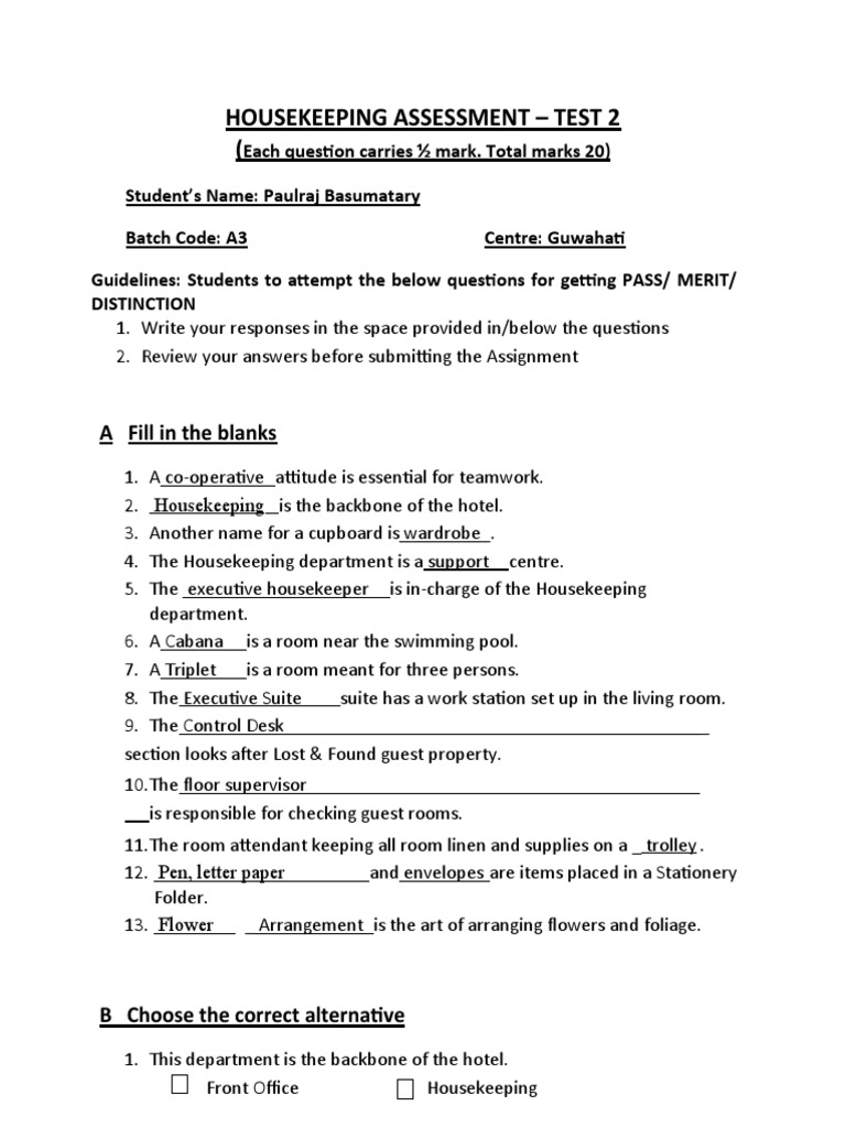 House Keeping Management question paper BHM Study Notes Housekeeping Test Questions Hotels focus on meeting the most basic needs of guests by providing clean,. If you are not ready to take this test, you can study here. Direct and control housekeeping operations and staff of the housekeeping department. Linen room supervisor or the executive housekeeper. what is the best way to clean up oil? answer 25 questions in 10. Housekeeping Test Questions.